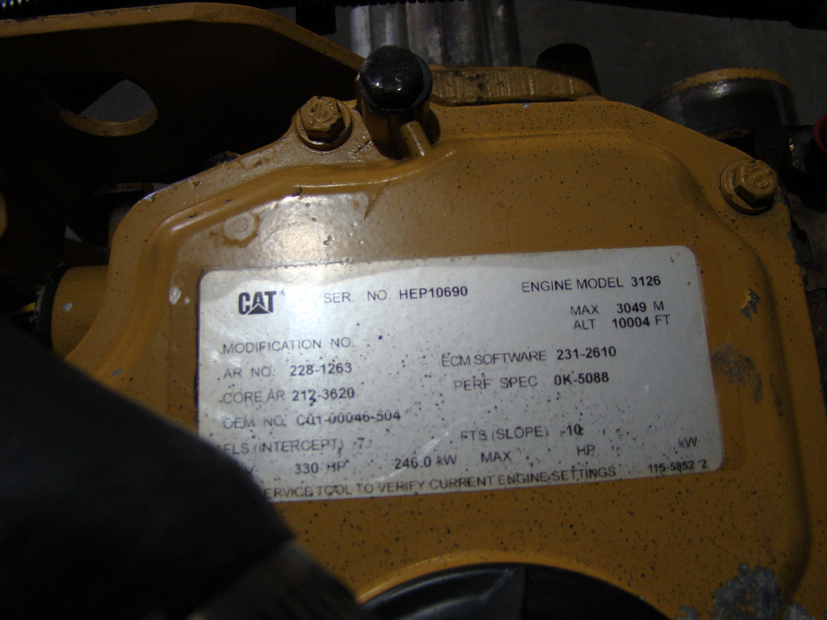 USED CATERPILLAR DIESEL ENGINE 3126 7.2L YEAR 2003 330HP. CALL VISONE RV (606) 843-9889. (CLICK FOR MORE INFORMATION)