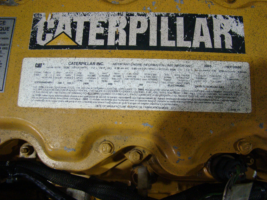 CATERPILLAR 3126 DIESEL ENGINES FOR SALE. CONDITION - USED. YEAR - 2003. SEVERAL USED CAT MOTORS IN STOCK. CALL VISONE RV (606) 843-9889 FOR MORE DETAILS.