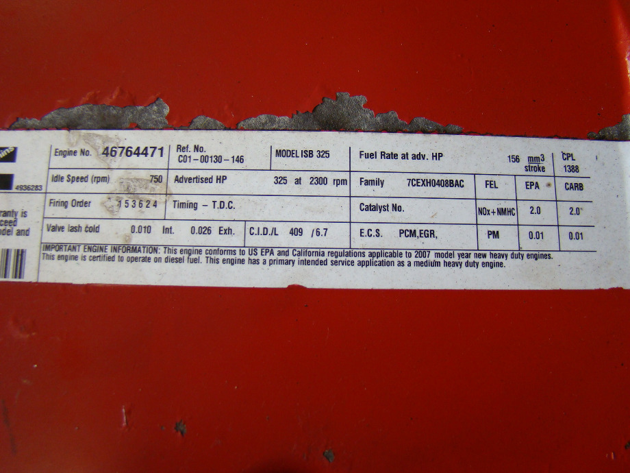 USED CUMMINS ENGINES FOR SALE   USED CUMMINS DIESEL ENGINE 6.7L ISB 350 YEAR 2007 350HP. CALL VISONE RV (606) 843-9889. (CLICK FOR MORE INFORMATION)